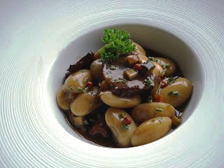 - Caldereta de alubias blancas con rape al azafrán (ver foto)