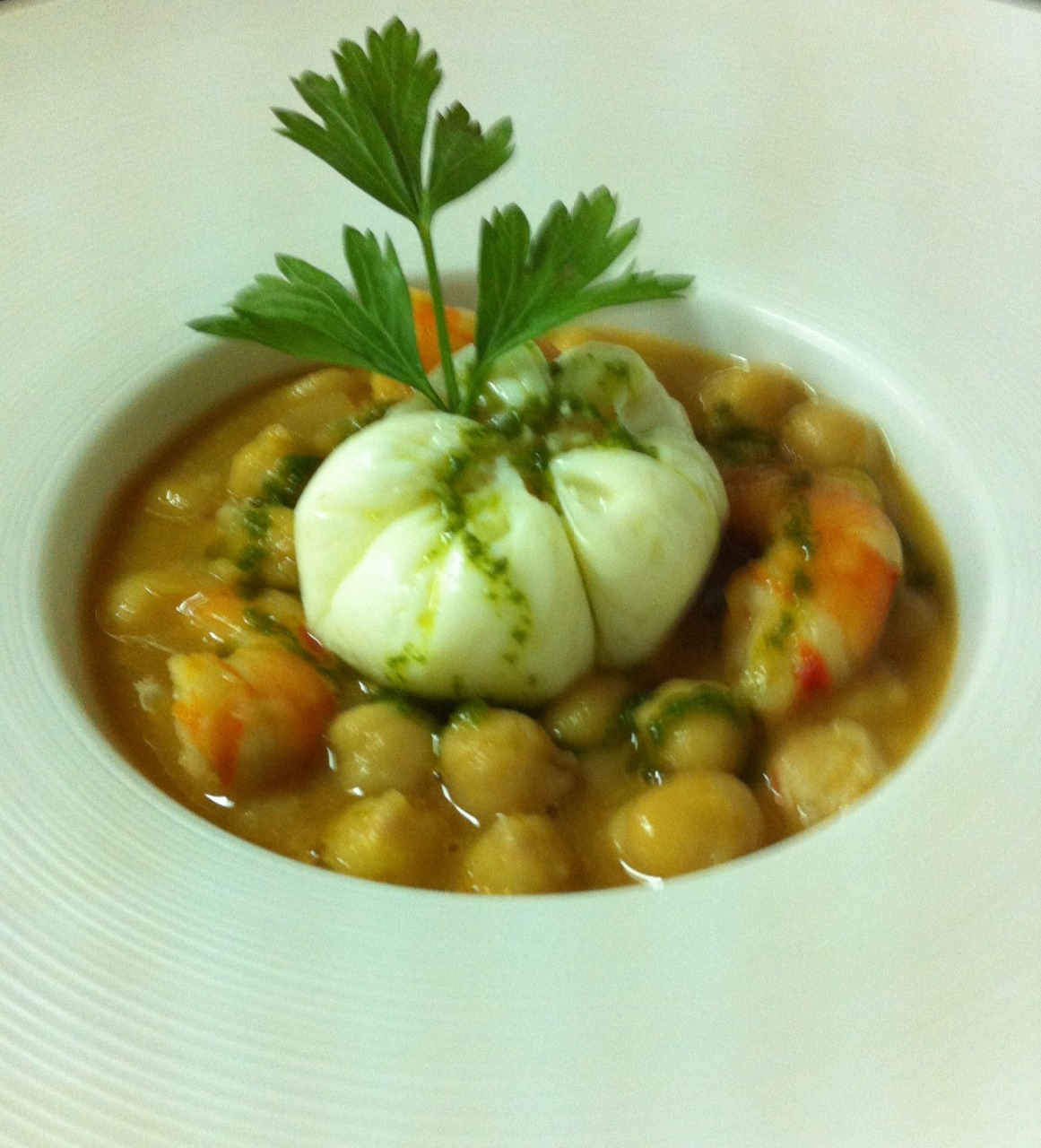 - Caldereta de alubias blancas con rape al azafrán (ver foto)